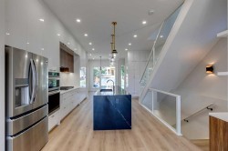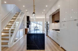 Mazon Design presents the “Richmond”, custom-built home on a choice, south exposure lot in the heart of popular Richmond/Knobhill. Mazon Design offers one-of-a-kind, hands-on attention to detail with over 2,300 sqft of luxury living space and 3 levels of quality upgrades & finishings. The open main floor is beautifully designed with 10’ ceilings and 8' interior doors, highlighted with a full size dining room and a dream kitchen featuring a 10’ island with seating for 6, floor-to-ceiling custom cabinets, Quartz countertops, gas range and top-of-the-line plumbing and lighting! The adjoining great room has a feature wall with media cabinets and a gas fireplace finished in porcelain tile. The wall of glass opens to an oversized, south exposure deck, plumbed for a gas BBQ. Conveniently located ½ bath and private mudroom with direct access to the yard and garage complete the main floor. The glass railings and in-step lighting make the stairway to the 2nd level a visual highlight! Upstairs features 9’ ceilings, fully equipped laundry, 3 piece bath, 2 spacious bedrooms (both with walk-in closets) and a gorgeous primary suite with multi-vaulted ceiling and spa-inspired ensuite which has to be seen to be appreciated! The lower level has the same level of quality finishings: 9’ ceilings, in-floor heating, 3 piece bath and spacious bedroom for guests or an office or home gym. The family room with the additional cabinets, sink and beverage fridge, is a great space for a home theater and play area for the kids. Easy lane access to the double detached garage which is drywalled, insulated and fully wired for an EV. Some notable upgrades: floorings glued and screwed (not nailed), 70 gal hot water tank, water softener, all cantilevers sprayed with R-40 insulation, basement walls waterproofed with “water dog asphalt coating”, foundation wrap membrane, additional rebar in basement slab to provide durability and a sump pump for peace of mind, an additional water line run to the back deck for a future hot tub plus fully landscaped front and back yards. Mazon Design carefully built and designed the home between 2 beautiful 70 year trees that provide both shade and gorgeous curb appeal. Amazing location around the corner from a park, walk to the shops and restaurants on 17th Ave and only minutes to downtown. Pick your possession date and move right in! Unbeatable Value!! New Home Warranty and Builder’s One Year, Door-to-Door Warranty. Price includes GST. Unbeatable value! Property is being sold at list price which is below replacement cost!