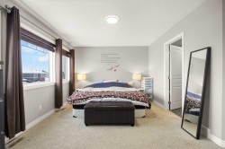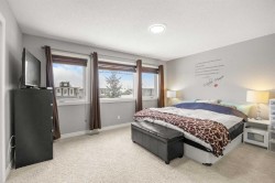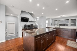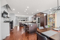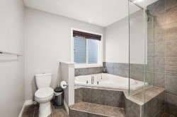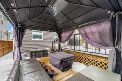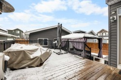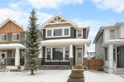 Two-Tier Deck with Gazebo | Oversized Double Detached Garage | New Roof 2025 | Central A/C |Beautifully updated and located in the family-friendly community of Evanston, this spacious 3+1 bedroom, 3.5-bath home spans over 2,460 sqft of living space, offering bright, open layouts, thoughtful upgrades, and a comfortable, family-ready flow — complete with air conditioning for year-round comfort.You’re welcomed by a 10-foot high ceiling in the foyer and Living room, where large windows fill the space with natural light. The main floor continues with 9-foot ceilings, creating an airy and spacious feel throughout. The well-appointed Kitchen features a centre island with eating bar, granite countertops, stainless steel appliances, ample cabinetry, and a versatile nook — perfect for a coffee bar or a work-from-home station. Adjacent to the Kitchen, the Dining room opens through a double sliding patio door to a two-tier deck with gazebo, with additional access from the mudroom via the side entrance. The mudroom also features a built-in bench, coat hooks, and closet for everyday organization. A powder room completes the main level.On the upper level, the spacious Primary suite boasts a generous walk-in closet and spa-inspired ensuite with soaker tub and separate tiled shower. Two additional well-sized bedrooms, a 4-piece bath, and an upstairs laundry room complete the upper floor.The fully finished basement provides versatile space for family living, featuring a recreation room perfect for gatherings or a home gym, a fourth bedroom with sink ideal for home-based wellness or beauty services, and a 3-piece bath.The south-facing backyard offers ample space for summer entertaining and relaxation. An oversized insulated double detached garage with back-lane access adds both convenience and utility. Recent upgrades include a new roof (2025), refreshed siding, and central A/C.Residents of Evanston enjoy parks, playgrounds, and scenic pathways, along with quick access to shopping, dining, and everyday amenities. Major routes including Stoney Trail, Beddington Trail, and 144 Ave NW make commuting downtown or to the mountains easy, while nearby Symons Valley offers additional retail and services — making this home a perfect balance of comfort, convenience, and community.