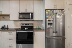 Welcome to Unit #2414 at 298 Sage Meadows Park NW — a beautifully designed top-floor condo built in 2020, nestled in the desirable northwest community of Sage Hill. This modern, move-in ready home offers 2 spacious bedrooms, 1 full bathroom, and stunning East-facing views of the peaceful pond and surrounding park.Inside, you'll find a bright, open-concept layout featuring 9’ ceilings, durable Luxury Vinyl Plank flooring throughout, and an abundance of natural light from oversized windows. The stylish kitchen is a true highlight, equipped with sleek quartz countertops, full-height cabinetry, stainless steel appliances, and a large island with seating—perfect for cooking, entertaining, or enjoying takeout nights.The living area flows seamlessly off the kitchen, offering a cozy space to relax and unwind. Step out onto your private balcony to enjoy your morning coffee with tranquil water views. The primary bedroom features a generous walk-in closet, while the second bedroom offers versatility for guests, a home office, or even a roommate setup. A well-appointed 4-piece bathroom is conveniently located nearby.Additional features include in-suite laundry, titled surface parking, and a storage locker—ideal for seasonal items, sports gear, or extra storage. This well-managed building offers access to scenic walking paths, green spaces, and nearby ponds and parks, all just steps from your door.