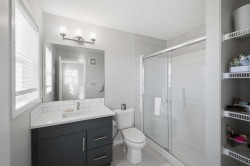 ***OPEN HOUSE Sat Jan.17 and Sun Jan 18 from 2-4:30pm***Value Priced to Sell!!! Welcome to this beautifully finished 3-bedroom, 2.5-bath detached home in the vibrant lake community of Mahogany. Offering 1,441 sq. ft. above grade with upgraded 9-ft basement ceilings, this property combines modern style with everyday functionality in one of Calgary’s most desirable neighborhoods. The main floor features high ceilings and an open-concept layout highlighted by midnight blue kitchen cabinetry, stone countertops, and a premium Blanco Horizon undermount sink. Upstairs, enjoy the convenience of a front-load washer and dryer, along with a spacious primary suite complete with a walk-in closet and private 3-piece ensuite. Two additional bedrooms provide flexibility for family, guests, or a home office. The basement is ready for future development with its impressive ceiling height, an egress window for a large bedroom, and rough-in plumbing for a full bathroom. Outside, the home offers a low-maintenance front yard, a fully fenced backyard, and paved lane access to an oversized parking pad. Located just 1 km from the Mahogany Beach House, you’ll enjoy year-round amenities including swimming, fishing, tennis, paddleboarding, skating (with a 2.4 km skating path), hockey, volleyball, playgrounds, a gymnasium, splash park, basketball courts, and firepits. This is an ideal opportunity to enjoy the best of lake living in Mahogany. Book your private tour today!
