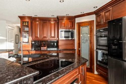 Welcome to 25 McKinley Bay SE! This meticulously maintained 5 bed, 3.5 bath, fully developed home offers almost 3000 sq ft of living space and sits on a massive 6673 sq ft Southwest-facing pie lot in the ever-popular 4-season community of McKenzie Lake! The main floor welcomes you with an open-to-above front sitting room with soaring two-storey windows and recently site-finished Brazilian Marbau hardwood floors. The gourmet sunlit kitchen is a masterpiece, featuring full-height cabinets, granite countertops, a large island, built-in double wall oven, 36" JennAir induction cooktop, Fisher & Paykel two-drawer dishwasher, warming drawer, and wine cooler. An adjacent family room with gas fireplace and custom built-ins invites relaxed gatherings, while the formal dining room comfortably seats eight—perfect for entertaining. A stylish powder room and a well-appointed mudroom and laundry room with upper cabinets and countertop complete the main level. Ascend the hardwood stairs where the site finished Brazilian Merbau hardwood continues on the upper level and into the large primary bedroom that comfortably fits a king set plus enough space for a reading area or home office setup. The 5-piece ensuite offers dual sinks, a separate shower, and a fully functioning jetted tub. Finishing out the upper level are 3 additional good-sized bedrooms and a 4-piece bath. Head to the fully finished lower level that is game day ready with a large rec room that includes a gas fireplace, wet bar, bar fridge and upper cabinets! The lower level is completed with a 5th bedroom and a 3-piece bath. Outside, a stunning southwest-facing backyard awaits—an expansive two-tier deck with a covered pergola offers generous space for outdoor dining and lounging. Enjoy evenings around the professionally finished stone patio with fire pit, or unwind in the secluded hot tub beneath a gazebo with privacy lattice. Two storage sheds keep seasonal items neatly tucked away. Additional highlights of this remarkable home include knockdown ceilings and fresh paint throughout, newer refrigerator, furnace, and central A/C, plus Gemstone exterior lighting, underground irrigation, stone accents, and painted stucco. This exceptional property includes year-round lake access at McKenzie Lake—swim, paddleboard, play pickleball, fish, and bbq in summer; skate and sled in winter. Just steps to Fish Creek Park’s walking and biking trails, McKenzie Meadows Golf Course, schools, parks, and playgrounds, with quick access to Deerfoot and Stoney Trail. This home truly has it all—book your private showing today.