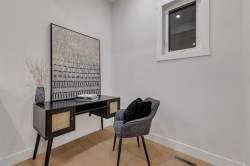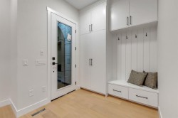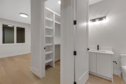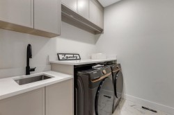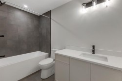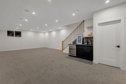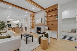 One Unit Remaining! Elegant French Chateau-Style Duplex in Richmond | Over 3,200 Sq Ft | Oversized Garage. Step into timeless sophistication with this beautifully crafted French chateau-inspired duplex, ideally located in the prestigious community of Richmond. Boasting over 3,100 sq ft of luxurious living space, this residence seamlessly blends classic charm with modern comfort. Engineered wood flooring flows throughout the main and upper levels, setting the tone for the refined finishes found throughout the home. Upstairs, you'll find three generously sized bedrooms, each complete with walk-in closets and private ensuites.. The stunning 5-piece primary ensuite is a true retreat, offering heated floors, a steam shower, a free-standing tub, a double vanity with a custom tower, and recessed lighting to create a spa-like atmosphere. The main floor is thoughtfully designed for both work and relaxation, featuring a convenient pocket office, a chef-inspired kitchen with a massive 15-foot island and high-end Kitchen Aid appliances, and an inviting living room centered around a cozy gas fireplace. A stylish mudroom with built-in cabinetry leads to the powder room and out to your private backyard through large patio doors. The fully finished basement offers a wet bar, bedroom with a 3 pc bathroom along with a huge rec area. Situated on a rare 135-foot deep lot, the backyard is generously sized—perfect for outdoor entertaining—and complemented by a double oversized garage for added convenience. This is a one-of-a-kind home that perfectly balances elegance, comfort, and versatility in one of Calgary’s most sought-after neighbourhoods.
