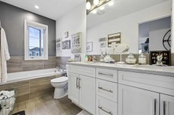 SEE THE VIDEO TOUR! SO MANY UPGRADES and SO MUCH VALUE HERE! LOW MAINTENANCE LANDSCAPING! LOOK AT THAT GARAGE INTERIOR! CORNER LOT WITH HUGE FRONTAGE and CURB APPEAL! Welcome to 261 Carrington Circle NW, a beautifully maintained and thoughtfully upgraded 2-storey home on a prime corner lot in the heart of Carrington. Offering nearly 2,000 sq ft of stylish, functional space above-ground, this 3-bedroom, 2.5-bathroom home is the perfect blend of comfort, craftsmanship, style, and convenience. As soon as you drive up to the home, the curb appeal on this home is undeniable. Step up to the home and you are greeted right away by the welcoming concrete front porch with its glass railing system. You will see that the pride of ownership exudes all throughout. The main floor features an open-concept layout ideal for everyday living and entertaining. Tastefully decorated with feature-walls all throughout, this home will not disappoint! Enjoy a bright and airy living area, a modern kitchen with quartz countertops and stainless steel appliances, and a spacious dining area. A convenient powder room, laundry area, and mudroom with built-in storage complete the level.Upstairs, the expansive primary suite offers a private retreat with a walk-in closet featuring custom built-ins, and an ensuite with double vanities. Two more well-sized bedrooms and a bonus room provide excellent space for family, guests, or a home office.The unfinished basement is a blank canvas awaiting your personal touch, perfect for future development.Outside, the home boasts a fully fenced backyard with low-maintenance artificial turf, concrete pad, and patio stones, ideal for entertaining or relaxing outdoors.The double attached garage is a rare highlight, equipped with epoxy flooring, smart wall-hanging solutions, overhead storage, and a 240V outlet for EV charging or workshop use.Enjoy peace of mind with the brand new roof and exterior siding installed in 2024. Located steps from green spaces, scenic walking paths, playgrounds, and minutes from schools, Carrington Plaza, and more nearby shopping with quick access to Stoney Trail and future C-Train access. This is a home that absolutely delivers on value and lifestyle.Don’t miss this rare opportunity in a high-demand NW Calgary community! Book your showing today!
