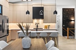 Welcome to Luxury Living in This Fully Reimagined Glamorgan ResidenceThis exceptional home has undergone a comprehensive, down-to-the-studs renovation, thoughtfully designed to deliver both sophistication and functionality. From the moment you enter, you are greeted by striking 14-foot vaulted ceilings that anchor an airy, open-concept floor plan and create an immediate sense of scale and elegance.The chef-inspired kitchen is a true centrepiece, featuring custom white oak cabinetry, a classic farmhouse sink, and seamless integration with the living and dining spaces—ideal for both everyday living and entertaining. The living area is warmed by a fireplace with bespoke millwork, adding architectural depth and refined character.The remainder of the main floor offers 10-foot ceilings and an abundance of natural light streaming through brand-new black-frame vinyl windows. A dedicated main-floor office with a custom glass door and oversized window provides an ideal space for remote work or a private study. The primary retreat is equally impressive, complete with a walk-in closet and a luxurious five-piece ensuite. An additional bedroom and a well-appointed three-piece bathroom complete the main level.The fully developed basement expands the living space with a generous secondary family room, laundry area, three-piece bathroom, and two additional bedrooms, offering flexibility for families, guests, or multi-generational living.This home has been meticulously planned and executed, featuring top-tier finishes throughout, a hardwired four-camera security system, and a doorbell camera with long-term recording capability for added peace of mind.Outdoors, the property continues to impress with a brand-new double-detached garage, new fencing, freshly laid sod, and all-new sandblasted concrete walkways surrounding the home and extending from the garage, creating a private, cohesive, and meticulously finished backyard retreat.A rare opportunity to own a fully renovated luxury home in the established and sought-after community of Glamorgan.