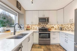 Just reduced! Welcome to this beautifully upgraded home with amazing value and extra side yard, located just a short walk from the private lake, two schools, parks, river pathways and shopping. From the moment you step inside, you’ll be impressed by the grand vaulted entrance, showcasing inlaid tile flooring and a sense of timeless sophistication. The home has been extensively refreshed, the main floor features an updated half bath, a front flex room, a formal dining room, and a bright dinette that flows seamlessly into the living room, complete with a cozy gas fireplace for cooler nights. The completely renovated kitchen is a showstopper, boasting quartz countertops, new white slow-close cabinetry, custom backsplash, stainless steel appliances, undermount lighting, and thoughtful design throughout, perfect for both everyday living and entertaining. Upstairs, you’ll find four spacious bedrooms, a laundry room, and an open den area ideal for a home office or study nook. Both bathrooms have been fully renovated, including a four-piece main bath and a luxurious four-piece ensuite with high-end finishes. The fully finished basement expands your living space with two large rec rooms that include the 75" TV, a fifth bedroom, and another three-piece bathroom—offering flexibility for guests, hobbies, or family movie nights. Outdoors, enjoy the massive deck and patio designed for entertaining with a retractable awning, hot tub ready, and complemented by multiple storage sheds. Additional updates include a newer roof, upgraded vinyl windows, PEX plumbing, updated hot water tanks, water softener, a new furnace with heat pump, and a heated double attached garage with a 220 outlet—ensuring year-round comfort and peace of mind. This meticulously maintained home truly has it all: show home quality, modern upgrades and an unbeatable location in a family-focused community with access to excellent schools, golf courses, and the beauty of nearby Fish Creek Park and the Bow River. Quick access to Deerfoot and Stoney Trail ensures easy connectivity across the city. Call today for your own private showing!