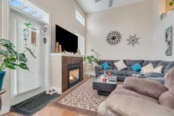Welcome to the largest townhome in the complex — a rare end-unit that blends space, character, and convenience. The distinctive windowed turret sets this home apart, filling the interior with natural light and adding a unique architectural touch. Inside, vaulted ceilings in the living and dining room create an airy, open atmosphere, while a gas fireplace provides a warm focal point for family gatherings.Upstairs, you’ll find three bedrooms, including a window-surrounded bedroom filled with natural light, a second generously sized bedroom, and a master suite complete with private ensuite and a large walk-through closet. An additional full bathroom serves the upper level. A convenient powder room is located off the kitchen. The large kitchen, outfitted with sleek black appliances, makes meal preparation a pleasure, and the thoughtful layout ensures seamless flow throughout the home. The finished basement provides versatile space for a recreation room, home office, or guest suite.The oversized single attached garage not only accommodates your vehicle but also features polyaspartic floor coating, shelving, and a storage wall system — with room for a motorcycle or the ability to fit two small cars. The driveway also provides space for two additional vehicles, offering excellent parking flexibility. Comfort upgrades include central air conditioning and heated flooring in both the main and garage entries, ensuring year-round comfort.Outdoor living is equally inviting, with a front deck off the kitchen where you can enjoy morning coffee in the morning sun, and a rear deck with west exposure for evening relaxation. The rear deck also includes a gas line, perfect for barbecues and entertaining. This family- and pet-friendly complex is designed for comfort and lifestyle, with snow removal and grounds maintenance included in the condo fees — freeing up valuable time to enjoy your home, family, and neighborhood.Everyday conveniences such as Walmart, Sobeys, London Drugs, restaurants, banks, medical offices, and many other services are all within walking distance. Royal Oak School (K–3) and William D. Pratt School (Grades 4–9) are also close by, making this an ideal location for families. The community of Royal Oak offers a wealth of amenities, including Royal Oak Park with walking trails, playgrounds, and picnic areas, as well as nearby Royal Oak Ravine Park and natural green spaces. Families benefit from playgrounds near the schools, and amenities such as an ice rink during the winter months and community garden plots available to rent during the warmer months.Adding to the appeal, a YMCA is located nearby, offering fitness facilities, swimming, and community programs for all ages. With excellent access to the airport, downtown, the mountains, and great public transit, Royal Oak provides the perfect balance of suburban tranquility and urban convenience.