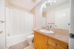 Welcome to this well-maintained family home in Lake Chaparral, offering over 2,436 sq ft of total finished living space, with a bright and practical layout, plus full access to the year-round lake amenities.The main floor features an open living area, a functional kitchen with plenty of storage, and a dining space that leads directly to a large backyard deck—ideal for everyday living and entertaining. Upstairs offers three comfortable bedrooms, including a spacious primary suite with a walk-in closet, private ensuite, and upgraded automatic blinds. A versatile bonus room adds flexibility for work or family use. The finished basement provides a cozy recreation room, an additional bedroom, and a full bathroom.The home has seen valuable updates including a newer hot water tank, a new furnace with humidifier and UV air purification (2025), new dishwasher, microwave, and kitchen faucet (2025), automatic blinds on the main floor and primary ensuite, CCTV system, a newly installed water softener, replaced roof and siding, and air conditioning for added summer comfort. Outside, a convenient shed provides extra storage for tools and equipment, and the attached double garage completes this practical family home.Situated on a quiet, family-friendly street close to schools, parks, shopping, and Lake Chaparral facilities, this property offers comfort, convenience, and an excellent community lifestyle.
