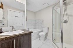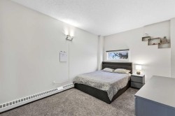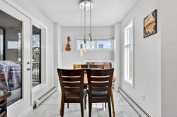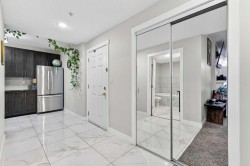 Welcome to this bright and spacious third-floor unit, ideally situated in the boutique ICBM Lofts—an intimate complex of just eight units—offering a rare combination of privacy, comfort, and exceptional inner-city convenience. Located close to shopping, everyday amenities, public transit, and the vibrant energy of 17th Avenue, this well-appointed home also provides easy access for commuting downtown. The thoughtfully designed kitchen features granite countertops, a tiled backsplash, and an abundance of cabinetry, creating both a functional and stylish space for cooking and entertaining. Adjacent to the kitchen is a dedicated dining area with direct access to a private, covered, and enclosed balcony—perfect for enjoying natural light year-round or creating a cozy extension of your living space. The generously sized living room is filled with natural sunlight from large windows and offers a welcoming layout ideal for relaxing or hosting guests. A gas fireplace adds visual charm to the space (currently non-operational), while marble-look tile flooring and soft carpet throughout the unit enhance both durability and comfort. This home offers two well-proportioned bedrooms, providing flexibility for a guest room, home office, or additional living space. The four-piece bathroom is thoughtfully designed with heated floors, a walk-in shower, and a deep soaking tub—creating a spa-like retreat. In-suite laundry with additional storage adds everyday convenience and completes the interior. An assigned parking stall in the covered parkade is included, offering secure and sheltered parking. Residents will appreciate the unbeatable location, just steps from multiple parks, tennis courts, and the Bankview off-leash dog park—perfect for outdoor enthusiasts and pet owners alike. With large windows, abundant natural light, and a prime inner-city location, this well-maintained home presents an excellent opportunity for comfortable urban living in a quiet, community-oriented setting.