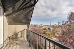 Crescent Heights - #304, 1606 4 Street NW: Walk to downtown from this TOP FLOOR CORNER CONDO in Crescent Pointe, located in the highly desirable community of Crescent Heights. This freshly painted, turn-key unit offers 983 sqft. of bright, open living space with laminate flooring throughout, 2 bedrooms, 2 full bathrooms, and titled underground parking with a storage locker. The spacious layout features a central kitchen with a breakfast bar that seats four, an adjoining dining area with access to a covered balcony with a BBQ gas line, and a bright living room with a cozy corner gas fireplace with mantle. The primary bedroom includes a walk-in closet and a 4-piece ensuite with a separate shower with rain shower head and a soaker tub. You will also find a second bedroom with French doors which could double as a den and a 4 pc main bathroom. Additional features include in-suite laundry, a wide parking stall, a storage locker, and visitor parking. This well-maintained building is located with easy access to Deerfoot and Crowchild Trails, minutes to downtown, near SAIT, the Bow River, parks, playgrounds, schools and transit (#2 bus). Shows well - call today for more information!