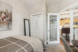 Welcome to Kensington living at its finest. Beautifully updated 2-bedroom, 1-bath condo located in the heart of Hillhurst, just minutes to downtown and steps from Kensington’s shops, cafés, transit, and river pathways. Professionally renovated in 2021, this home features an open-concept layout with quartzite countertops, Shaker-style maple cabinetry, stainless steel appliances, laminate flooring, ceramic tile, and a cozy gas fireplace. The kitchen is well designed with ample storage and functional counter space. Bright living and dining areas open onto a west-facing balcony with natural gas BBQ hookup, ideal for enjoying afternoon and evening sun. Additional highlights include central air conditioning installed in 2024, new bedroom carpet (2025), in-suite laundry, and underground heated titled parking with visitor parking. Residents enjoy an array of building amenities including elevator access, fitness center, party room, secured parking, storage, and visitor parking. Well-managed building in one of Calgary’s most walkable inner-city communities. A move-in-ready home offering excellent value and lifestyle. A must see to be truly appreciated!