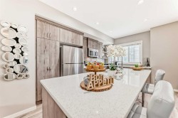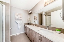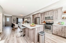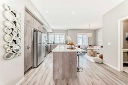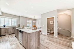 OPEN HOUSE ON SAT JAN 31 1PM -4PM. Welcome to this modern and stylish townhome located in the highly sought-after community of Nolan Hill. Thoughtfully designed and beautifully finished, this home offers 3 bedrooms, 2.5 bathrooms, a versatile ground-floor den/flex space, and a double attached garage—perfect for small families, downsizers, or young professionals alike.The bright and open main level is flooded with natural light throughout the day, creating an ideal space for both everyday living and entertaining. Contemporary laminate flooring flows seamlessly through the main living area, while large patio doors lead to a private balcony and further enhance the home’s airy feel. The kitchen overlooks the dining and living rooms, making it perfect for keeping an eye on kids or engaging with guests.The chef-inspired kitchen features full-height warm-tone cabinetry with stylish exposed shelving, a large central island, and a built-in pantry—both functional and visually striking. Upstairs, the spacious primary bedroom offers a 4-piece ensuite complete with dual vanities, a walk-in shower, and a walk-in closet. Two additional well-sized bedrooms, a full bathroom, and convenient upper-level laundry complete this floor.Off the foyer, the ground-level den provides flexible space ideal for a home office, workout area, or kids’ playroom. The double attached garage offers secure parking year-round, along with extra storage—perfect for an active lifestyle.Enjoy maintenance-free living in this family-friendly Nolan Hill community, close to parks, schools, shopping, and all amenities. This exceptional townhome won’t last long—don’t miss your opportunity to make it yours. Contact your favourite Realtor today to book a private showing. *** CHECK OUT THE VIRTUAL TOUR ***