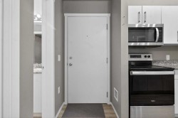 INVESTORS or FIRST-TIME HOME BUYERS — welcome to your NEW HOME in the desirable community of Skyview Ranch! This MAIN-FLOOR 2-BEDROOM, 2-BATHROOM condo is the perfect blend of COMFORT, CONVENIENCE, and VALUE, with VERY LOW CONDO FEES.The open-concept layout is ideal for easy living or generating strong MONTHLY RENTAL CASH FLOW. The kitchen features GRANITE countertops, STAINLESS STEEL appliances, and a LARGE ISLAND that doubles as a breakfast bar. It flows seamlessly into the living room, which leads to your private patio — a great spot to enjoy morning coffee or unwind with a book.Both bedrooms are well-sized and feature WALKTHROUGH CLOSETS, offering excellent functionality. The primary suite includes a private ensuite with a granite vanity, while the second bedroom has direct access to the main bathroom, making it feel like a SECOND PRIMARY — perfect for roommates or tenants.You’ll love the convenience of a TITLED, HEATED UNDERGROUND PARKING STALL — no more scraping snow or ice in the winter! The building also offers a FITNESS CENTER, on-site daycare, and plenty of VISITOR PARKING.LOCATION is truly UNBEATABLE: walk to shops, groceries, restaurants, and everyday essentials, with QUICK ACCESS to schools, parks, public transit, Stoney Trail, and the airport.Whether you’re looking for a reliable INVESTMENT at a GREAT price or the FIRST PLACE you call home, this MOVE-IN READY unit checks all the boxes. Call your favourite realtor and come see it today!