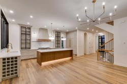 Sen Homes presents a stunning new estate home in the prestigious community of Upper Mount Royal, crafted to the highest standards and ready for occupancy. WITH 4,383 sq.ft. of meticulously developed living space, this home features three spacious upstairs bedrooms, each with walk-in closets and luxurious en-suites equipped with heated floors; the primary suite includes a steam shower and dedicated makeup counter. The main floor is thoughtfully designed with a custom mudroom, butler’s pantry, private office, formal dining room, and an open-concept kitchen and living area. White oak hardwood flooring spans the main and upper levels, with hardwood accents continuing into the basement. Premium finishes include solid core doors and extensive custom millwork such as office built-ins and a coffee station in the primary suite. The fully developed lower level boasts a gym, an additional bedroom, a full bathroom, smart strand silk carpet and a generous recreation area complete with a stunning wet bar. Noteworthy highlights include European-style black-framed tilt-and-turn windows, in-floor heating in the basement, elegant architectural arches, updated hardware throughout, and more. Situated on a quiet, tree-lined street with a sunny west-facing backyard, the outdoor space includes a large deck with two gas lines (for BBQ and fire table/heater) and an oversized double garage that is insulated, drywalled, painted, & heated—this home is the epitome of luxury and function in one of Calgary’s most sought-after neighborhoods.