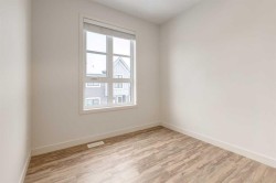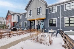 Luxury and refined styling define this beautifully upgraded townhouse, ideally located in the upscale and sought-after community of Walden. From the moment you arrive, the landscaped frontage and spacious concrete patio create an inviting outdoor space—perfect for relaxing, BBQing, or entertaining friends. This unit is privately positioned within the complex, tucked away from street traffic and noise for added peace and comfort. Inside, you’ll find nearly 1,300 sq. ft. of thoughtfully designed living space featuring 3 bedrooms, 3.5 bathrooms, and two dedicated parking stalls. The main level showcases 9 ft ceilings and luxury vinyl plank flooring that continues throughout both levels, creating a cohesive and modern feel. The gourmet kitchen is a standout, offering quartz countertops, a chimney-style hood fan, upgraded stainless steel appliances including a gas stove, and premium finishing touches for both style and functionality. Upstairs features 2 bedroom and 2 full bathrooms, while the fully finished basement adds exceptional versatility with a third bedroom, a full bathroom, convenient laundry, and a generous walk-in closet with excellent storage capacity. Pride of ownership is evident throughout, and the well-managed complex benefits from very low condo fees—making this home not only stunning but practical. With public transit, shopping, parks, and easy access to Stoney Trail and Deerfoot Trail, commuting and daily convenience are effortless. This move-in ready home offers the perfect blend of luxury, comfort, and location in one of Calgary’s most desirable newer communities.