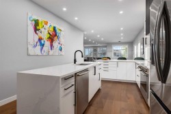 *See last 3 photos for detailed feature sheet* We are proud to present this massive, exquisitely renovated front walkout bungalow in the prestigious community of Signal Hill. Offering 4 bedrooms and 3 bathrooms, this exceptional residence showcases 2,938ft2 of total refined living space across two beautifully designed levels, including 1,596ft2 on the main floor. At the heart of the home is a truly showstopping open-concept kitchen—a space that must be experienced to be fully appreciated. Designed for both everyday living and elegant entertaining, it features a 36" induction range, expansive quartz island with eating bar, custom hood fan, pot filler, striking backsplash, and sleek new cabinetry. The primary retreat is a private sanctuary, complete with a spacious walk-in closet and a spa-inspired ensuite. Indulge in the freestanding soaker tub, oversized walk-in shower, rustic vanity, and exquisite tilework—every detail thoughtfully curated to create a calming, luxurious escape. Additional premium features include a heated garage, central air conditioning, modern fireplace, engineered hardwood flooring, triple-pane windows, instant hot water system, new blinds throughout including some with motors, and a high-efficiency furnace with UV air filtration. Privacy film on the windows enhances comfort without sacrificing natural light. A large, secure locked storage room in the basement is available for buyer inspection. Signal Hill has long been one of the city’s most sought-after neighbourhoods, rich in both prestige and history. The home’s address pays homage to the four Alberta battalions of World War I, who trained at the base of Signal Hill—an enduring legacy commemorated by the iconic geoglyphs visible from Stoney and Sarcee Trail. Enjoy breathtaking mountain views from the west-facing balcony, along with close proximity to excellent schools, effortless access downtown, and a direct route west to the Rocky Mountains. This is a rare and remarkable offering—a true gem in an iconic location. All permits are in place and available, including electrical, gas, plumbing, framing and engineering permits. We would be delighted to accommodate your private showing.