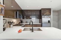 Enjoy those sunny downtown views from your big 10x7 west-facing balcony on the third floor! If you’ve been wanting to walk to work and stay close to everything, this is the spot. This well-built 1-bedroom suite is right by downtown, transit, and tons of shopping.The kitchen is sleek and modern with high-end stainless appliances, a gas stove, and a big quartz peninsula that’s perfect for cooking or hosting. There’s lots of room in the dining nook for a proper table too. The living room is bright and functional with corner windows and a cozy wall-mounted electric fireplace. You also get a spacious bedroom with great closet space and a full bathroom.Flooring has a mix of laminate hardwood, carpet, and tile for a nice mix of style and comfort. Plus, you get titled heated underground parking, secure storage, a fitness room, bike storage, a stylish lobby, and visitor parking—all part of “Bridgeland Hills.” And of course, you’re just minutes from downtown, trendy shops, restaurants, and everything Bridgeland has to offer.