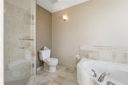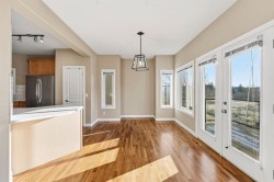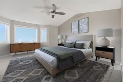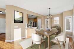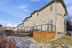 Welcome to 33 Prominence Park SW, a beautifully upgraded and fully developed attached duplex offering 2348 sq ft of luxurious living space in one of Calgary's most desirable communities. Tucked into a quiet cul-de-sac with natural light and thoughtful renovations throughout. Step inside to a spacious front foyer that flows into an open-concept main floor featuring 9 foot ceilings, walnut hardwood flooring, recently updated throughout and a quaint corner fireplace, perfect for cozy winter evenings. The kitchen has been stylishly upgraded with maple cabinets, stainless steel appliances, quartz countertops, making it as functional as it is beautiful. The dining area opens to a private south-facing expanded cedar deck with newer railings and a privacy screen- ideal for entertaining or relaxing outdoors. Upstairs, the primary retreat showcases vaulted ceilings, a large walk-in closet with ample shelving, a luxurious ensuite complete with a large corner soaker tub and separate shower. Two additional generously sized bedrooms, a full bathroom, complete this level. The fully finished basement adds outstanding versatility with 9-foot ceilings, a spacious family and recreation room, some extra storage under the stairs, and an additional four-piece bathroom -ideal for guests, teens, or extended family. An additional feature includes a double attached insulated garage and two extra parking spaces on the front driveway. This well managed-complex features mature landscaping backing on to green space and pathways, with low cost condo fees covering exterior maintenance, snow removal, and landscaping. Quick access to downtown, major roadways, shopping, schools, and the LRT station. A rare opportunity to own a move-in-ready home offering upscale finishes, functional living, and an exceptional location. This gem has everything you are looking for in one outstanding home. Book your private showing today!