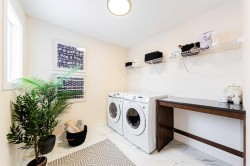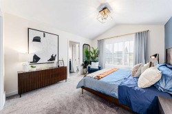 ** Brand New Genesis Home** Welcome home to the Calaria II designed and built by Genesis Homes. This thoughtfully designed home features a main level bedroom & 4pc bath, spice kitchen, an incredible open floor plan with high ceilings, dual primary bedrooms, an upper level loft and more! Boasting 2,550 square feet between the main and upper levels this home is full of living space. Step inside the front door to a wide foyer with open to below ceilings. The main level is masterfully curated for the style and comfort with two living rooms; the first is a formal living room has a stunning open-to-below ceiling complimenting the vast size of this home. The formal living room blends seamlessly into the dedicated dining room. Move further inside and experience a home made for entertainment; an open floor plan chef inspired kitchen and great room. The kitchen is outfitted with sparkling quartz countertops, ample cabinet storage, a gas line and a stainless steel builders appliance package. Keep this kitchen sparkling and use the spice kitchen! The centre island in the kitchen is equipped with a barstool seating area making it the perfect space to enjoy small meals and socialize while you cook. The great room is centered with a 50" electric fireplace and also had a door that leads to your rear deck with a BBQ gas line. The main level is outfitted with large windows bellowing in an abundance of natural light. This level is paired with a bedroom and 4pc bath with a tub/shower combo providing you with space for overnight guests or multigenerational living. Walk up the plush carpet staircase with a spindle railing to your upper level oasis. Upstairs holds 4 bedrooms- 2 primary and 2 additional bedrooms! The first primary bedroom opens with french doors to a vaulted ceiling expansive retreat. This primary is paired with a walk-in closet and 4pc ensuite bath. Primary 2 also does not disappoint; a deep walk-in closet and private 4pc ensuite bath with walk-in shower, private washing closet and double vanity. Bedrooms 3 & 4 upstairs share the 4pc bath with a tub/shower combo. The upper level loft is a treat; relax and unwind here with your family in the evenings. The walk-in laundry room is near all the bedrooms is every home owner's dream. The unfinished basement comes with a separate entrance making your future development plans flexible. This home is within walking distance to parks, amenities and future CBE schools! Ready for August-September of 2026, Hurry and book a showing at this gorgeous Genesis home today! **Photos are representative of the Calaria II show home in Logan Landing. Finishes may differ**