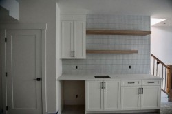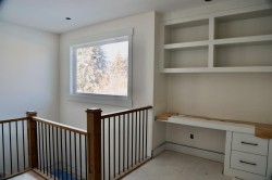 Timeless design, modern comfort, and everyday function come together on a quiet tree-lined street in this brand-new SEMI-DETACHED home in GLENBROOK. With expansive windows, warm natural materials, and elevated finishes throughout, it’s crafted for family living in one of Calgary’s most established neighbourhoods.Step in from the covered entry to a bright foyer with sightlines across the open main floor, where light oak hardwood carries seamlessly through the principal rooms. The front dining room is anchored by a custom feature wall, setting the tone for the thoughtful millwork found throughout. At the heart of the home, the chef-inspired kitchen blends beauty with purpose—two full pantries, crisp white uppers over matching oak lowers, a striking waterfall quartz island, and professional KitchenAid appliances including a flat gas cooktop, built-in wall oven, and French-door fridge. Clean lines, elegant lighting, and generous prep space make this a true culinary hub.The floorplan flows naturally into the inviting living room, where custom built-ins frame a cozy gas fireplace, creating the perfect space to unwind or gather with friends. Large windows and an 8’ sliding patio door pull in west light and open directly to the backyard for easy indoor/outdoor living. A well-designed mudroom with built-ins keeps everyday essentials organized, while an elevated powder room provides privacy and convenience through a hidden door.Upstairs, retreat to the serene primary suite, where vaulted ceilings lift the space and morning sun pours through oversized windows. The ensuite reads like a private spa, offering a massive walk-in shower with body jets, double sinks, a deep free-standing soaker tub, and beautifully curated tile throughout. A custom walk-in closet completes the sanctuary. Two additional bedrooms sit down the hall, each with their own custom cabinetry, and a thoughtfully placed built-in desk creates the perfect homework zone or dedicated home office. A spacious laundry room with quartz countertop, sink, and extra storage ensures the second floor is as practical as it is comfortable.The lower level flexes effortlessly with family life—an expansive family room with custom built-in TV wall, a generous flex/rec area with a full wet bar, plus an additional bedroom and full bath, ideal for guests, teens, or extended family.Step outside to a sun-soaked west-facing backyard, complete with a large rear deck and BBQ gas line, ready for late summer evenings and weekend gatherings. A double garage and a striking exterior finished in stucco and Hardie-board siding complete this exceptional property.Set in the heart of Glenbrook, this home places you close to schools, parks, playgrounds, shopping, transit, and major routes—offering the perfect blend of community charm & everyday convenience.A refined, functional, and beautifully built home—crafted for real life, designed to be lived in, & ready to enjoy. More photos to follow, as cabinets and flooring have now been installed.