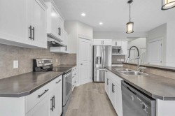 Welcome to this beautifully updated home located in the vibrant and family-friendly community of New Brighton! Thoughtfully renovated throughout, this move-in-ready property features stylish lighting fixtures, fresh paint, and new carpeting, offering a bright and modern living space. The home boasts three generously sized bedrooms, including a spacious primary suite with a large walk-in closet, and a huge bonus room—perfect for a growing family. The open-concept main floor provides the ideal setting for both entertaining and everyday living. A new roof was installed in 2021, adding long-term value and peace of mind.Situated in a quiet cul-de-sac location, this home is just a short walk to the New Brighton Clubhouse and local schools, while also offering easy access to public transportation, Deerfoot Trail, and Stoney Trail. You’ll enjoy being minutes from the South Health Campus, the amenities of Mahogany and the 130th Avenue shopping area, as well as a nearby dog off-leash park. Don’t miss this opportunity to own a beautifully updated home in one of Calgary’s most convenient and connected communities—schedule your private showing today!