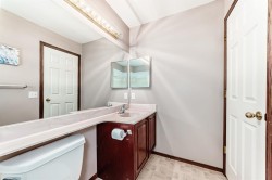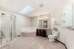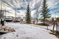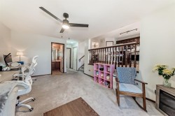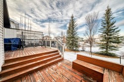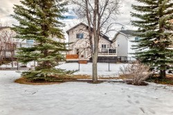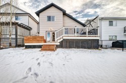 Located on a quiet street, this home backs directly onto a beautiful green space and playground. The seller has recently invested in quality updates, including a new two-tier deck, hardwood flooring, and a new refrigerator with gas stove. The main level features an open layout with soaring vaulted ceilings and 12-foot windows that fill the living and dining areas with natural light. The kitchen is finished with rich cherry-stained oak cabinets and a central island. The third level family room provides a large, comfortable living space. It offers a walk-out to the spacious two-tier deck, which is also accessible from the kitchen. The entire top floor is dedicated to the private master suite. This expansive space includes double walk-through closets and a large ensuite bathroom with a jetted tub, separate shower, and a skylight. The ground level provides a private bedroom and a full bathroom, making it ideal for guests or roommates. On the fourth level, you will find a laundry area with a washer and dryer, plenty of storage space, and a flexible room perfect for an office or hobby room. New roofing in 2023 and water heater in 2024. The location provides easy access to Deerfoot Trail and shopping at 130 Ave SE. Douglasdale School is a short walk away, and there is a playground right behind the backyard.