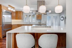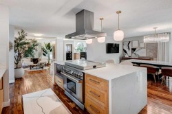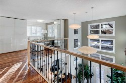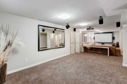 Lissington Drive is the most prestigious street in North Glenmore Park. Front yard greets you with mature trees and maintenance free landscaping. Through the impressive two storey foyer you will be welcomed to a specious and bright open floor plan. Tropical Acadia hardwood floors throughout main floor, expanding up the stairs, den and hallway. Beautiful kitchen showcases Bird's-Eye maple cabinetry complete with quartz countertops, and backsplash, large kitchen island with breakfast bar and walk-in pantry. There are 3 nice size bedrooms on second level with open sitting area overlooking bellow, 4 pc bathroom and laundry. Primary bedroom features lovely 5 pc bathroom which includes large tub, steam shower, heated floor and double vanity. The lower level is fully developed with large theater room including system, 3 pc bathroom with heated floor, large storage room/utility room with 2 high efficiency furnaces, AC, for upper level, solid core interior doors. Other upgrades include new shingles on the house and garage in 2022, pressure treated wood fence and gates in 2024, as well as 50k of poured concrete including patio, hot tub, RV parking large enough to accommodate 42ft RV, oversized and heated double garage with 50 amp electrical hook up which is currently used for EV charging. Super location, close to all amenities, including best schools, walking distance to Lakeview Golf Course, Glenmore Athletic Park, Baseball Diamond, 7 tennis Courts, Stu Peppard Arena, parks and transit. Well cared for and waiting to be enjoyed!!!
