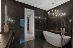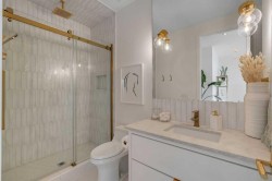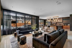 Understated elegance & sophistication describe this gorgeous property located on one of Elbow Park’s most sought after streets. Offering 4+1 bedroom’s, 9 bathrooms and 7,136 SF of livable space this home has been meticulously brought to life by DWK Interiors and was a finalist for Western Living’s ‘Interior Designer of the Year’ Award. You are welcomed in to a large foyer and will immediately feel the bespoke finishing as your view takes in the Pearl White Epoxy floor and smoky finished mirrors. The heart of a home is the kitchen where Black Dekton Stone is freely used for countertops, backsplash and cabinetry that is beautifully contrasted with walnut features. The 60” Wolf Range and SubZero Refrigerator are best in class. The Dekton continues into the Butler Pantry which offers augmented prep space and an oversized 2nd Fridge and Freezer. Take your eyes off of the 16’ Island and oversized rain-drop light fixture and you won’t miss the temperature controlled wine cellar (220 Bottles) that leads right into the rear wall which is a full Nano Accordion Door that fully opens to the outdoor space. A custom wall bar compliments all these spaces as you move into the living room which makes a statement with the Walnut feature wall! From the living room you can easily walk past a chic powder room and find yourself immersed in the event space set up with entertainment in mind. This room exudes class with White Oak herringbone patterned hardwood grounded by a black & gold diamond design built-in. The ceiling is covered in black leather-like wall paper and all leads to a formal dining area lit up by a 10’ gold custom chain link layered fixture. Venture upstairs to 3 secondary bedrooms that are all Suite-Like with exclusive ensuites and customized perfectly for the whole family. The Primary Suite offers 2 separate walk-in closets and an ensuite which features more Dekton counters with accents of gold and white & full slab tiled walls. LOVE the floating bath and the steam shower showcasing Italian wood textured tile. Upstairs laundry room with double washer and dryers completes this floor. The 3rd story loft is perfect as a bonus room, office or craft room with private bathroom and roof-top patio. It offers a fridge, sink and mini dishwasher with custom millwork and built-ins. The walk-up lower level functions perfectly as a family retreat and games space with a full service bar area. A Large fitness room also showcases a custom one-of-kind wall mural by internationally known artist Michelle Hoogsveld. The 5th bedroom and private ensuite is set up for a live-in nanny or house guests. Huge mud-room with lockers and cabinetry allow for hiding all your gear. Oversized triple/tandem garage has slat walks to assist with storage, dog or bike wash and heated epoxy floors. The rear yard offers multiple multiple options for play-time or relaxation with an oversized pool with swim up bar and fully appointed outdoor kitchen including pizza oven! Call for private showing today!