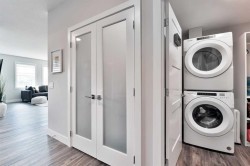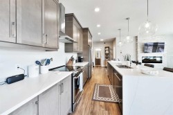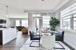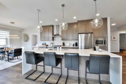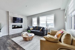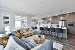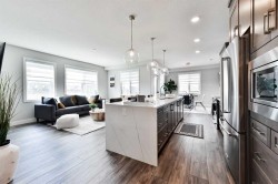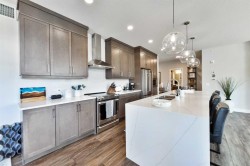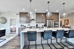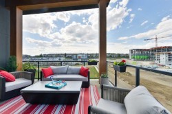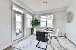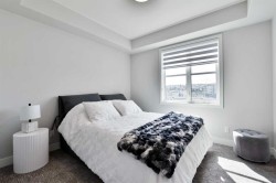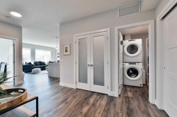 Welcome to this stunning top-floor, corner-unit condo offering over 1,100 sq ft of beautifully designed living space, featuring 2 bedrooms, 2 bathrooms, and an exceptional layout that blends comfort with functionality.From the moment you step inside, you’re greeted by an abundance of natural sunlight and a spacious front entry. To your left, a discreet laundry area and a generous flex room with double doors—ideal as a home office or additional storage—add to the versatility of this home. The thoughtful split-bedroom layout ensures privacy, with a large secondary bedroom and full bathroom on one side, and a spacious primary suite on the other, complete with a walk-in closet and private ensuite.At the heart of the home is the open-concept great room, dining area, and gourmet kitchen—perfect for entertaining. Step outside onto the expansive wraparound balcony and take in the serene ravine and mountain views.Two conveniently located underground parking stalls (#39 & #40) are just steps from the stairwell—making it a breeze to run up to the unit or quickly access your vehicle.Perfectly situated just a short walk to Aspen Landing’s shops, restaurants, and amenities, and within close proximity to top-rated public and private schools. Enjoy easy access to downtown Calgary, the mountains, and the airport, along with nearby public transit and future park spaces.Whether you're downsizing, investing, or seeking a lock-and-leave lifestyle for winter travel, this impressive residence offers it all.