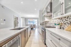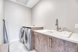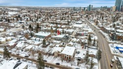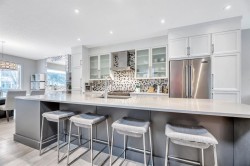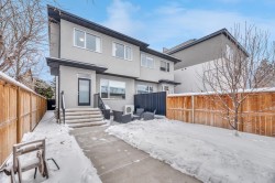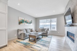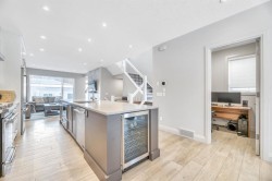 This exceptional inner-city infill stands apart for its quality, craftsmanship, and thoughtful design. Located in the sought-after community of Renfrew, this stunning two-storey home offers unbeatable access to schools, recreation facilities, scenic pathways, public transit, and is just minutes from downtown, WALKABLE even! Every detail has been carefully curated, from the designer lighting and custom tile work to a tailored built in with mirror, a timeless neutral palette, and a main floor office. Oversized windows and 9’ ceilings on all three levels flood the home with natural light, enhancing the open, modern layout that balances style with everyday functionality.The chef-inspired kitchen is a true showpiece, featuring a premium Jenn-Air stainless steel appliance package, custom cabinetry, built-in wine cooler, and an impressive 13-foot quartz island with seating for four—perfect for entertaining. The space flows seamlessly into the dining area and inviting living room, anchored by a striking tiled gas fireplace for chilly winter nights. Central air also included for the future warm days of Calgary! Upstairs, the primary retreat is nothing short of spectacular, showcasing a spa-like ensuite designed for relaxation with a soaker tub, dual sinks and walk in shower, a walk-in closet, and Two additional great sized bedrooms, a spacious 4 pc bathroom, and convenient upper-level laundry complete this level.The fully developed basement offers an ideal home theatre space with a refreshment station—perfect for movie nights or entertaining guests. Outside, enjoy a low-maintenance, landscaped and fenced backyard with a private ground-level patio, green space, and a double detached garage already wired for EV charger. Quick possession is available if you want to spend the holidays here! A refined inner-city lifestyle awaits in this meticulously crafted Renfrew home.