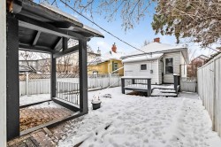 CHECK OUT THE VIRTUAL TOUR! Charming INNER CITY HOLDING PROPERTY WITH TONS OF POTENTIAL. This well-maintained single-family home in the desirable RENFREW community previously generated $2,500 in monthly rent (including utilities), making it appealing to investors seeking cash flow. The property is move-in ready or can be rented as-is, with potential for future development. There is over 1,030 sf of usable space and ample storage! The main floor includes an enclosed, bright front porch with windows; 2 good-sized bedrooms; a 4-piece updated bathroom with tiled floors/walls; and a large dining/living room with a decorative brick fireplace. As you head into the galley kitchen, you will find stainless steel appliances, including a gas range, along with a separate laundry room tucked away. Plus, off the back, you have another enclosed mudroom porch and more built-in storage space. Subject to city/municipality approval and permitting, you could have a separate entrance leading to the basement. There is ample storage and a large recreation room that could serve as a bachelor's suite. The backyard features a deck and a covered entrance to the oversized single-car garage, which could serve as a shop or gym in addition to providing vehicle parking. This character home offers flexibility for occupancy or continued rental income, with potential for basement suite development. The zoning is M-C2, allowing for future infill development when ready. Check out this listing, which includes virtually staged photos to illustrate its great potential.