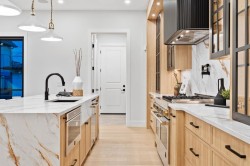 Designed with intention and built with precision, this custom two-storey home in Winston Heights showcases over 3,900 square feet of luxury living where craftsmanship meets modern design. As you enter, the main floor immediately impresses with soaring 10-foot ceilings, open-to-below ceilings, a gorgeous chandelier, wide-plank hardwood, and an abundance of natural light that fills every corner. The front foyer opens into a thoughtfully designed office enclosed by glass walls, with large windows creating a bright and quiet workspace. Just beyond, the formal dining area provides an elegant setting for gatherings, seamlessly connected to a spice kitchen and full butler’s pantry for added storage and prep space. The chef’s kitchen is the centrepiece of the home, featuring Jenn-Air built-in appliances, a 48” 6-burner Jenn-Air stove, an oversized multi-tier quartz island, quartz backsplash, undermount and inside cabinet lighting, and a striking custom range hood. It opens to a spacious living room anchored by a sleek gas fireplace, custom panelled feature wall with wood grid detailing and oversized windows overlooking the deck and backyard. A stylish powder room with custom San Marcopolo Luxury Oro waterproof paint and a large mudroom with built-ins complete the main level. Heading upstairs from the beautiful maple hardwood open riser stairs, a central family room provides a relaxed lounge area with large windows and built-ins separating the bedrooms for added privacy. The primary suite is a retreat of its own, complete with an oversized walk-in closet featuring custom millwork and access to the laundry room. The ensuite is finished to perfection with a freestanding tub, double vanities, a makeup vanity, a steam shower with body jets, and heated floors. Two additional bedrooms offer generous space, each with built-in closets, and share a full bathroom. The fully developed basement extends the living space with a large open recreation room ideal for entertaining, a custom wet bar, a private gym, a full bathroom, and an additional bedroom perfect for guests. Finishes are carried throughout with the same high-quality craftsmanship, lighting, and millwork found upstairs. Outside, the home sits on a landscaped lot with a spacious rear deck and an oversized three-car detached garage offering ample parking and storage. Additional upgrades include rough-ins for built-in interior and exterior speakers, A/C rough-in, and a security system including exterior cameras. The location is exceptional, steps from Winston Golf Club, surrounded by schools, parks, and playgrounds, and just minutes from downtown, and Deerfoot Trail. This home blends refined design, comfort, and convenience in one of Calgary’s most sought-after inner-city communities. Call today to book your private tour.