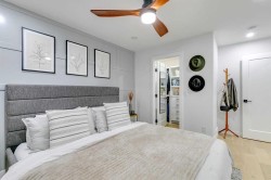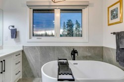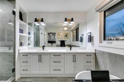 LUXURY RENOVATION | 5 BEDS + 3 BATHS | 4-LEVEL SPLIT | 2,600+ SQ FT OF LIVING SPACE | DOUBLE GARAGE | FACES GREEN SPACEThis completely redesigned and modernized home offers a perfect blend of functionality, style, and luxury in the highly desirable community of Varsity. Ideally located just minutes from the University of Calgary, Market Mall, University District, and the LRT, it provides exceptional convenience for both families and professionals. Rebuilt from the studs up in 2022 the renovation met 2022 building codes with new plumbing, electrical, insulation, heating, and exterior were installed ensuring quality and longevity for years to come.Inside, the main floor showcases an open-concept layout with engineered hardwood throughout and large windows that flood the space with natural light. The contemporary kitchen is a chef’s dream, featuring custom shaker cabinetry, a generous pantry, subway tile backsplash, and a premium stainless steel appliance package that includes a French door refrigerator, gas cooktop, built-in oven and microwave. A spacious quartz-topped island provides extra prep space, breakfast bar seating, and a stylish focal point for gatherings.The inviting living area centers around an elegant inset gas fireplace with a dark tile surround and built-in media unit, creating the perfect place to relax. The adjacent dining area opens through large sliding doors to a large deck and interlocking brick patio—an ideal setting for outdoor dining and entertaining.Upstairs, you’ll find continued hardwood flooring and a stunning primary suite designed for comfort and sophistication. The room features a soft grey accent wall, large window, custom walk-in closet, and a beautiful barn door that leads to the luxurious spa inspired 5-piece ensuite. The ensuite includes a modern double-sink vanity, freestanding soaker tub, and a glass-enclosed shower with. A secondary bedroom overlooks the front yard and green space across the street, while a nearby 4-piece bathroom offers matching quartz counters with a tiled tub & shower combo.The lower level adds even more functional living space with engineered hardwood, three additional bedrooms, a full bathroom, and a stylish mudroom featuring built-in storage and direct backyard access. One level down, a bright and expansive rec room awaits—complete with plush carpeting, a custom media wall, and a wet bar with built-in cabinetry and a beverage fridge perfect for watching the game or movie nights with the family.Outside, the private backyard is fully fenced and opens directly onto Varsity Acres Park—perfect for kids, pets, and outdoor activities. With its prime location, modern updates, and timeless design, this exceptional Varsity home offers the perfect balance of luxury, comfort, and convenience.