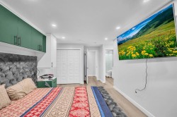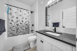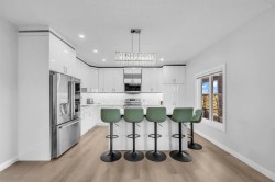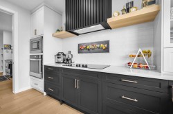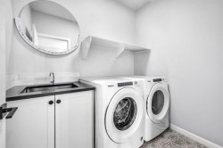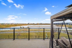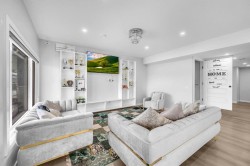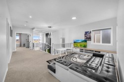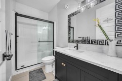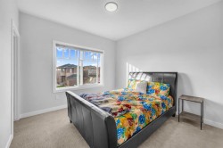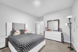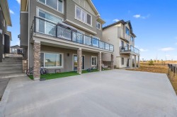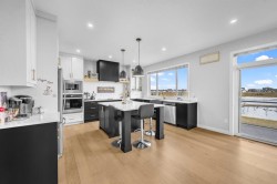 Discover an unparalleled level of luxury in this extraordinary two-storey with a walk-out basement, perfectly positioned to capture serene, panoramic views of the pond. Boasting over 3,100 sq. ft. of refined living space and a triple car garage, this residence blends architectural sophistication with premium comfort.The main level exudes elegance from the moment you step inside. Towering ceilings, expansive windows, and an abundance of natural light set the tone for elevated living. A versatile main floor bedroom or executive office is paired with a full bathroom, offering exceptional convenience for guests.The gourmet kitchen is a true showpiece, featuring striking two-tone custom cabinetry, a generous island, built-in premium appliances, and a fully outfitted spice kitchen for seamless entertaining. The dining area flows effortlessly into the grand family room, where a stunning open-to-above design and a contemporary fireplace create an ambiance of warmth and sophistication. From here, step onto the full-width elevated deck, the perfect vantage point to enjoy the views year round.The upper level continues to impress with four beautifully appointed bedrooms, including two opulent primary suites. The main primary retreat offers a spa-inspired ensuite complete with luxurious finishes and an expansive walk-in closet. A spacious and airy loft overlooks the living room below, providing a versatile lounge or relaxation space.The walk-out basement (Illegal) opens directly to the picturesque pond, offering a rare and private natural backdrop ideal for creating a future entertainment haven or personal sanctuary. A masterfully crafted home that embodies elegance, functionality, and an exclusive waterfront lifestyle. Indulge in the luxury you deserve book your private showing today.