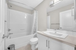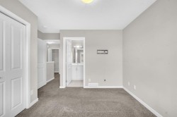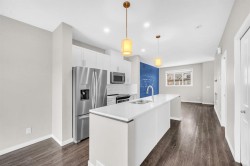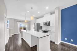 Welcome to this beautifully maintained townhome offering exceptional space and comfort in the desirable community of Copperfield situated on a walkout lot backing onto green space and walking trails! Featuring 3 bedrooms and 2.5 bathrooms, this home is perfect for families or anyone looking for a stylish and functional layout. The bright, open main level includes a welcoming foyer with access to the garage and a versatile walkout flex room. The second floor boasts an open-concept design with a spacious living room, dining area, pantry, 2 piece washroom and a beautifully upgraded kitchen complete with modern cabinetry, stainless steel appliances, and a large centre island perfect for entertaining. Off the dining room, step onto your private balcony that backs directly onto a walking trail and green space, offering peace and privacy. The upper floor features a generous primary bedroom with a 3 piece ensuite, along with two additional bedrooms and a full bathroom. Enjoy the convenience of a single attached garage plus driveway, giving you ample parking and storage. With its ideal location backing onto serene pathways and green space, this home offers both tranquility and accessibility. Located in a family-friendly community with nearby schools, parks, shopping, and easy access to Stoney Trail and Deerfoot, this move-in ready home is the perfect blend of comfort and convenience!