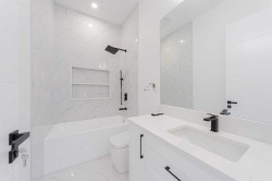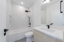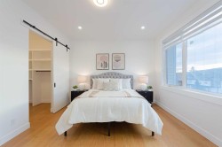 Welcome to this stunning semi-detached 2 storey in the highly sought-after community of Montgomery just minutes from the UofC, Foothills Hospital, Market Mall, Bow River, and a variety of local shops & restaurants! With over 2000sqft, this home is built with quality, luxury and stylish, and combines of convenience and modern living. Steps inside to discover a thoughtfully designed layout with high-end finishes throughout. The main floor features an airy open-concept design, highlighted by a chef’s kitchen with a large island, a bright and inviting family room that leads to the balcony with mountain views! Up along the unique glass railing on stairway, you will find 3 grand sized bedrooms, a laundry room and 2 full bathrooms. The primary suite is a true retreat, packed with mountain views, a walk-in closet and a luxurious ensuite featuring a double vanity, walk-in shower, and a soaking tub. Both main and upper floor has 10ft ceilings! The walk-out basement is a self contained legal suite(approved with City of Calgary), offering a large recreation/living area, a full kitchen, two bedrooms, and a full bathroom—perfect for your extended family or rental potential! Extras of this home including AC, KitchenAid appliances package, all solid interior doors, intelligent toilet, in-floor heating in basement & heated floors in master ensuite, sunny south facing balcony & backyard...all finished with thoughtfully DESIGNER TOUCHES! Don't miss this gem! **Open house Sat & Sun Jan 17th & 18th 1-3pm**