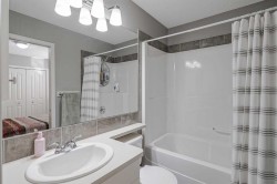 Experience a new standard of living in this meticulously maintained Auburn Bay residence. Perfectly nestled on a friendlycul-de-sac in the heart of Auburn Bay, this property is designed for the demands of modern family life. This bright, welcomingmain-floor den offers a flexible space for work or leisure. The sprawling open-concept layout easily accommodates bothintimate family meals and grand entertaining, boasting new appliances, updated flooring, and a comprehensive blindsand lighting package. The upstairs is thoughtfully designed for convenience, with a dedicated laundry room. The spaciousprimary bedroom is a true retreat with a private ensuite and walk-in closet, while two additional bedrooms are connectedby a full Jack & Jill bathroom, ensuring efficiency and privacy. The fully finished lower level expands your living options,presenting a large guest bedroom with an adjacent full bathroom and a flexible area ready for a home theatre or children’splayroom. Outside enjoy a well sized back deck and a double garage offers secure parking and extra storage. The sought-after location is just moments from schools and playgrounds, making it an idyllic setting for a growing family. Imagine alife of unparalleled convenience and connection in the highly sought-after Auburn Bay with close proximity to a multitudeof amenities including lake access and a short drive to both Stoney and Deerfoot trails.