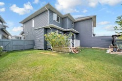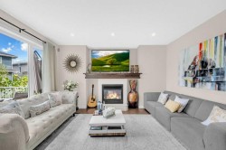 Welcome to this stunning 4 bed, 3.5 bath semi-detached home inRedstone, offering over 1900 sqft above grade plus a fully finishedillegal basement suite with separate entrance.Main floor features an open-concept layout, 9 feet ceilings (at all 3 levels), hardwoodflooring, a chef’s kitchen with granite island, stainless steelappliances & walk-in pantry, plus a bright living room with fireplace.Upstairs boasts a luxurious primary suite with 5-pc ensuite & customwalk-in closet, two more bedrooms, a spacious great Room & full bath.Basement offers a 1-bed illegal suite with full kitchen, 4-pc bath &spacious rec room. New Roof and siding done.New Garage Door.Brand New stove installed in the main floor Kitchen. Enjoy a double attached garage, landscaped & fenced backyard, deck,well cared beautiful shrubs. Minutes to major routes, like StoneyTrail, Metis , Deerfoot and airport, and future elementary schoolcoming soon. Walking distance from the bus stop. This home truly has itall!?? Book your showing today!