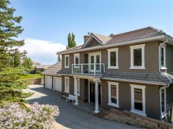 NEW PRICE! Located in the prestigious gated community of The Slopes, this exceptional estate home at 57 Slopes Point SW masterfully blends timeless craftsmanship, sustainable luxury, and an unbeatable location. Built with enduring quality, the home features in-floor radiant heating throughout multiple levels, the attached triple garage, and even the private heated driveway—ensuring ultimate comfort and energy efficiency through every season. A concrete tile roof adds to the home’s structural integrity and low-maintenance appeal, underscoring the care and foresight behind every detail of this custom build. Set on a South-facing lot with views of The Rocky Mountains, this 5,500+ sq. ft. estate offers 4 spacious bedrooms above grade and 4.5 bathrooms, perfectly suited for families and entertainers alike. The heart of the home is the chef-inspired kitchen, which showcases custom walnut cabinetry, a Sub-Zero full fridge and full freezer, Miele six-burner gas range, Wolf range hood, and a Marvel beverage fridge, all thoughtfully selected for their performance and elegance. Granite countertops, a generous island, and panoramic views complete the space. Throughout the home, you’ll find stunning crown molding, detailed millwork, soaring 10’ ceilings, and expansive windows that flood the interior with natural light. A dramatic staircase, custom built-ins, and warm gas fireplace with a marble feature wall elevate the main floor living areas. The main level also includes formal living and dining spaces, a dedicated home office, convenient laundry room, and elegant powder room, plus access to a sunlit deck that spans the back of the home. Upstairs, the primary retreat offers luxury and serenity, featuring a private balcony with mountain views, a spa-inspired 6pc ensuite with soaker tub, dual vanities, and custom glass shower, along with a custom walk-in closet fitted with rich walnut cabinetry. Three additional bedrooms and beautifully appointed bathrooms provide ample space for a growing family. The fully finished walkout basement includes a 4pc bathroom with steam shower, a home theatre (convertible to a fifth bedroom), fitness room, and expansive recreation space with gas fireplace. A wet bar complete with dishwasher, beverage fridge, and wine fridge leads to a covered patio and beautifully landscaped backyard—perfect for summer entertaining. Positioned just moments from Aspen Landing Shopping Centre, Calgary’s top-rated private schools (including Webber Academy, Rundle College, and Calgary Academy), and only 20 minutes to downtown, this location is as convenient as it is exclusive. Surrounded by professional landscaping, mature trees, and carefully curated outdoor living spaces—including multiple decks, BBQ areas, and a heated driveway—this home represents a rare opportunity to own in one of Calgary’s most coveted communities. For those who value sustainable design, superior craftsmanship, and a prime location, 57 Slopes Point SW is the ultimate executive retreat.