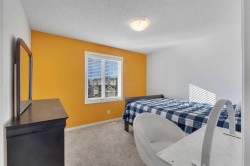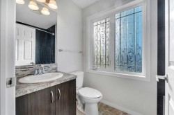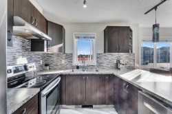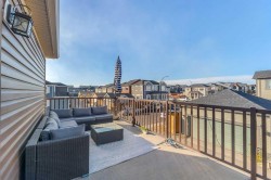 Beautiful townhome with no condo fees, a double attached garage, and air conditioning.This end-unit townhouse features modern décor throughout and luxury vinyl tile flooring on the main level. The spacious living room is perfect for entertaining. The stunning kitchen includes rich cabinetry, stainless steel appliances, a peninsula with a breakfast bar, modern lighting, and is open to the dining area.The upper level offers two primary bedrooms, each with its own ensuite bathroom and walk-in closet. A bright bonus room—ideal as an office or second living space—features sliding doors that lead to a private deck. Conveniently, the laundry is also located on the second level.