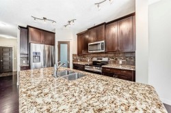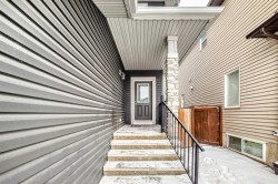 Welcome to this beautifully designed 4-bedroom, 3.5-bath with finished basement with no condo fees semi-detached home . The light-filled main floor boasts a den, an open-concept layout with a spacious living room, kitchen, dining area, and a half bath—ideal for both entertaining and daily living. All appliances are included (fridge, stove, dishwasher, microwave, washer, dryer). Curb appeal shines with a poured concrete driveway and an attached garage. Comfort and convenience continue with a fully fenced backyard leading to the back alley-perfect for summer gatherings. The upper level features a private master retreat with a walk-in closet and luxurious ensuite bath. Two additional bedrooms, a full bath, and a bonus room—perfect for kids or guests and the laundry room complete this floor. The fully finished basement includes a 1-bedroom, 1- full bathroom with a separate walkout entrance and a large recreational room—an ideal private space for extended family. You're just minutes from parks, schools, shopping, major roadways, YYC Airport, and CrossIron Mills, and surrounded by walking paths and natural green spaces, this home offers both convenience and a peaceful lifestyle. Call today!!