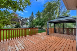 A backyard like this doesn’t just change the home, it changes how you live! A MASSIVE PIE LOT with over 9000 sq/ft creating a BACKYARD OASIS most of us just dream of. Nestled in a QUIET CUL-DE-SAC this UPDATED FAMILY HOME with 4 BEDROOMS + BONUS ROOM + MAIN FLOOR OFFICE + DEVELOPED BASEMENT includes CENTRAL A/C and a HEATED GARAGE | Enjoy your new life WALKING TO PARKS & SCHOOLS & TRANSIT & the COMMUNITY CENTRE on the days you aren't just hanging out with the family creating life long memories in your park sized secure backyard. Nestled in a quiet cul-de-sac in the heart of Citadel, this inviting family home combines comfort, function and a true connection to the outdoors. Central air conditioning, a heated double attached garage and one of the largest pie-shaped lots in the community with a sun-soaked southwest backyard make it a standout choice. Mature trees and full fencing surround the yard, creating a private oasis perfect for both relaxation and play. Summer evenings can be spent unwinding beneath the gazebo on the 3-tiered deck, hosting lively BBQs or watching children run across a green space that feels more like your own park than a backyard. Inside, carefully considered updates pair with a layout designed for everyday living. At the front, a bright den with French doors provides privacy for working from home or pursuing creative projects. The kitchen, with granite counters, stainless steel appliances, crisp white cabinetry and a walk-in pantry, anchors the main floor. A sunny bayed dining nook frames peaceful backyard views, while the adjacent living room features a striking stone-clad wall and generous windows, inviting both light and connection. A discreetly located powder room completes the main level. Upstairs, a full-height stone fireplace makes the oversized bonus room an inviting retreat for family gatherings or cozy nights in. The primary bedroom comfortably accommodates a king-sized bed and includes a walk-in closet plus a 4-piece ensuite with a jetted tub that promises relaxation. Two additional bedrooms and a well-appointed full bathroom round out the upper floor. The finished lower level expands your options with a massive rec room, built-ins framing a second fireplace and a fourth bedroom ideal for guests, teenagers or extended family. Added conveniences include a central vacuum system, extra driveway parking and a charming front porch that sets a welcoming tone from the moment you arrive. Beyond the home, you’re just a short walk to Citadel Park with its playground, tennis courts, skating rink and community centre. Schools, green spaces and transit are all nearby, offering both practicality and lifestyle. Rarely do homes with lots this large and this private come to market in Citadel, this is your chance to make it yours!