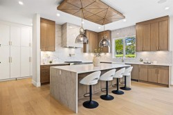 OPEN HOUSE 15 February 1pm-3pm. Welcome to this extraordinary, brand-new custom estate home, perfectly positioned in the highly sought-after community of Varsity Estates. Backing directly onto the golf course, this residence offers breathtaking views of the fairways from nearly every principal space, including the kitchen, dining room, master suite, guest bedroom, family room, bonus room, and the beautifully landscaped backyard. From the moment you enter, you’re greeted by soaring open-to-above ceilings, modern glass railings, and designer chandeliers that create an immediate sense of elegance and grandeur. The thoughtfully designed floor plan offers both formal and casual living spaces, featuring a sophisticated living room and a warm family room, each highlighted by its own fireplace. At the heart of the home is a gourmet kitchen equipped with premium JennAir appliances, a convenient coffee bar, and an expansive island perfect for entertaining. Seamlessly connected dining and living areas provide an ideal setting for gatherings, while expansive windows frame stunning golf course vistas. This residence features 4 generously sized bedrooms and 5.5 bathrooms, including a luxurious master suite with panoramic views, a spa-inspired ensuite with heated floors, steamer in shower and a custom walk-in closet. Additional highlights include an executive office, home gym, theatre room, and a wet bar designed for elevated entertaining. Luxury is in every detail—heated washroom floors, central air conditioning, and high-end lighting throughout. Practicality meets modern convenience with 200-amp electrical service, EV charger readiness, and a triple heated garage with epoxy flooring. Blending contemporary architecture with timeless finishes, this Varsity Estates masterpiece offers more than just a home—it delivers an unrivaled lifestyle in one of Calgary’s most prestigious communities. Book your Private Tour now.