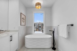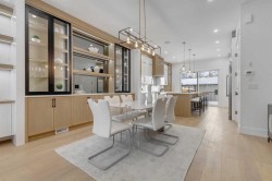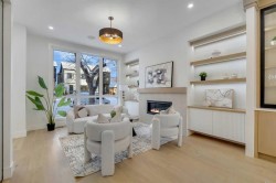 This MOVE-IN READY semi-detached home in MOUNT PLEASANT delivers that rare mix of thoughtful design, modern luxury, and everyday comfort. Wide-plank hardwood, custom built-ins, and oversized windows set the tone, and the open flow through the main floor makes the home feel both expansive and incredibly functional. You enter through a spacious foyer with a full front closet and sightlines straight through to the living room. An OFFICE sits just off the entry, tucked away enough for privacy while still connected to the main level. The living room sits at the front with a gorgeous feature fireplace and built-in shelving that brings a clean, designer feel to the space. Large windows open to mature street trees, giving the room a soft, natural backdrop. The dining area sits comfortably between the living room and kitchen, sized for hosting without feeling overly formal, with an incredible custom built-in full wall serving space with decorative storage and stunning inset lighting. The kitchen is where everything really comes together. Full-height custom cabinetry, quartz counters, designer lighting, and a HIGH-END APPLIANCE PACKAGE & POT FILLER make the room feel elevated yet approachable. A massive island with seating keeps the space social, and sliding glass doors to the SOUTH back patio fill the space with natural light and make indoor & outdoor entertaining a breeze! Just off the kitchen, the MUDROOM includes custom storage and easy access to the backyard and garage, keeping daily life organized. A stylish 2-piece bath completes the main floor. Upstairs, the PRIMARY SUITE feels like a true retreat, bright and spacious with room for a full furniture layout, while the walk-in closet is neatly designed for maximum usability. The ensuite delivers a spa-like feel with a large designer soaker tub, dual sinks, and an oversized walk-in shower. Two additional bedrooms sit across the hall, each with great closet space and large windows. The main 5-piece bathroom features dual sinks and modern finishes, making it ideal for a busy household. A full laundry room on this level adds convenience and extra storage. The lower level offers even more flexibility with an EXTENDED BASEMENT w/ LEGAL 3-BED, 2-BATH LOWER SUITE (approved by the city). With a full KITCHEN, large rec room, 3 bedrooms, 2 bathrooms, laundry & plenty of storage, this level opens the door to multigenerational living, long-term guests, or additional rental income. The layout is practical, the rooms are well-sized, and the finishes are clean & modern. And the location ties it all together. You’re in the heart of a walkable, established community surrounded by tree-lined streets. Confederation Park, Kensington, and the downtown core are all within easy reach. Quick access to 14th Street, Crowchild Trail & major transit routes makes commuting simple, while nearby cafes, local restaurants, playgrounds, and green spaces create that everyday convenience everyone’s looking for. *photos from show suite some finishes may vary