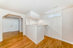 Location! Location! Location! Charming attached bungalow with an illegal suite, offering nearly 2000 sq. ft. of comfortable living space. The main level features 2 spacious bedrooms, while the lower level includes an additional 2 bedrooms, perfect for extended family or rental income. Enjoy outdoor living with a massive deck and both front and back grassy yards. The property boasts in-unit laundry for both the main and lower levels, along with newer windows for energy efficiency and comfort. Located within walking distance to elementary, middle, and high schools, and just a block from the community outdoor skating rink. The fenced, secure backyard provides a safe haven for children and pets. A fantastic opportunity for versatile living and potential rental income!