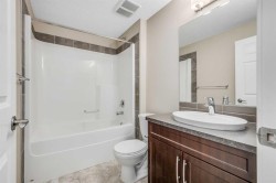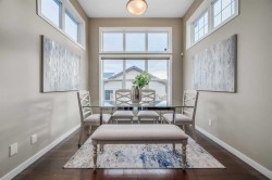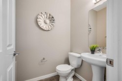Welcome to this stunning home located in the highly sought-after Skyview Ranch community! Situated on a corner lot, this property offers an exceptional living experience, blending comfort, convenience, and modern upgrades in a fantastic location.As you enter, you’re welcomed by a spacious living area, followed by beautiful hardwood floors that flow through the kitchen and dining spaces, creating a warm and timeless atmosphere. The open-concept layout provides an ideal setting for hosting guests or enjoying quiet family time. The thoughtfully designed kitchen is perfect for any home chef, featuring sleek stainless-steel appliances, a large island, and plenty of cabinetry. A half bathroom completes the main floor.Upstairs, you’ll find three generously sized bedrooms, including a primary bedroom complete with its own private ensuite bathroom. A second full bathroom serves the additional bedrooms.The fully finished basement adds even more living space, offering a cozy living room, a bar area, a full bathroom, and a dedicated laundry room with extra storage.Step outside to the oversized deck, ideal for summer gatherings or peaceful evenings outdoors. The fully fenced backyard offers both privacy and ample room for outdoor activities.With over 2,100 sq. ft. of living space, this home also includes an oversized garage, providing plenty of room for vehicles, storage, or a workshop. Recent upgrades such as a new roof enhance both functionality and curb appeal.Just steps from a playground and walking paths, you’ll appreciate being close to outdoor recreation. The home has been meticulously maintained, and the back alley offers convenient access. An on-demand water heater ensures endless hot water for the entire household.Enjoy wonderful neighbors and the quiet, family-friendly atmosphere of Skyview Ranch, all while staying close to major roads, schools, parks, shopping, and public transit.Don’t miss your chance to make this charming home yours!