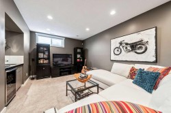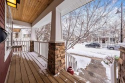 Discover this beautifully maintained 2-storey, 4-bedroom home on a quiet, tree-lined street, offering over 2,700 sq. ft. of living space. Built in 2004 by Homes by Avi, this property stands out with its charming west-facing backyard, classic full-width front veranda, stone and James Hardie exterior, and thoughtfully landscaped trees and flower beds.Step inside to soaring 9' ceilings, elegant hardwood floors, and a flexible main-floor layout that adapts to your lifestyle. The front room can serve as a home office, formal dining space, or relaxed sitting area. Just beyond the spacious powder room, the stylish kitchen features stainless steel appliances, quartz countertops, pantry cabinetry, and designer lighting over the raised breakfast bar — a perfect hub for hosting and gathering.A separate laundry area with additional pantry storage sits just off the kitchen. The rear living room is bright and inviting, with large windows overlooking the backyard and a striking gas fireplace. Use it as a cozy family room or an elegant dining space — the versatility is yours. The back entry includes a generous closet and access to the double detached garage, plus a large ground-level patio area with gas line for barbecuing and a deep, grassy yard ideal for kids and pets.Upstairs, the primary suite is a true retreat with space for king-sized furniture, a walk-in closet, and a luxurious ensuite complete with a deep soaker tub, separate shower, and private water closet. Two additional bedrooms are bright, well-sized, and located next to a 4-piece bathroom.The fully finished basement expands your living space with a rec room perfect for movies, games, or a home gym, along with a 4th bedroom, full bathroom, and three substantial storage areas.Perfectly positioned for lifestyle and convenience, this home is walking distance to top-rated schools — Lycée Louis-Pasteur and Masters Academy — plus all the trendy shops, cafés, and award-winning restaurants of Marda Loop. A tranquil pathway leads directly to Safeway and Starbucks, emphasizing the highly walkable, pedestrian-friendly nature of this exceptional neighbourhood. Additional features include central A/C and a new hot water tank (2022). Available for quick possession.