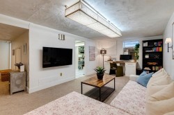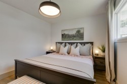 You won’t want to miss this Beautifully Renovated Jaeger-Built Bungalow showcasing a touch of Iconic Mid-Century Charm. The Open Floor Plan offers a spacious, airy Living Room with Bay Window and a Stunning Stone-Featured Wood-Burning Fireplace – perfect for cozy gatherings or entertaining.The elegant Formal Dining Room features a Skylight and a Modern Batten Wall Design that adds warmth and character. The Gourmet Kitchen is truly the heart of the home, complete with Quartz Countertops, Custom Cabinetry, and a Large Island designed for both cooking and connection.You’ll find Three Generously Sized Bedrooms and a Beautiful 5-Piece Spa-Inspired Bathroom with a convenient Laundry Chute. Premium Flooring flows throughout, and the Freshly Painted Exterior enhances the home’s outstanding curb appeal.The Fully Developed Basement offers a Large Recreation Room, Versatile Flex Space, a Bedroom with Walk-In Closet, and a Newly Renovated 3-Piece Bathroom—perfect for guests, teens, or extended family. There’s also a Functional Laundry Room and Ample Storage Area for added convenience.Additional highlights include a Single Attached Garage, Extended Driveway, and a Full 50-Foot Lot with Two Side Patios and a Spacious Backyard—offering plenty of room to add a Double Garage while still maintaining outdoor living space.Upgrades include: New Windows (some), New Flooring Throughout, Freshly Painted Exterior, Designer Lighting, and a Custom Kitchen with Quartz Countertops—a perfect combination of Style, Function, and Modern Comfort. Be sure to check out the Video Tour!