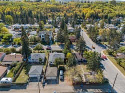 Nestled on a quiet, tree-lined street just steps from Bowness Park, the Bow River pathways and the Bowmont trails, this charming bungalow sits on a generous 50’ x 120’ lot in one of Calgary’s most desirable locations. The west side of Bowness offers the perfect blend of nature access and city amenities. The Bow River is steps away for a cooling dip or bath in some of the city's rare Douglas Fir forest. Wander over for a milkshake from Angel's Diner or pick up farm fresh produce at the Calgary Farmers’ Market West. Quick access to Stoney Trail ensures any part of the city is accessible. Featuring two spacious bedrooms plus a large den, the home offers a bright and functional layout with stylish laminate flooring, updated paint, and a new roof (2023) and windows (2019). The spacious kitchen showcases raised-panel oak cabinetry and a central island with eating bar — perfect for casual dining or entertaining. The dining area features custom built-in booth seating and connects seamlessly to a cozy living room. The home offers built-in storage space under the mud room and dining area seating, and the main bedroom boasts a floor to ceiling closet unit. There is space to add a second closet in the main bedroom, and the second bedroom provides a further large closet. The fenced backyard and sunny front veranda offer ample space to relax, garden, or play. Spacious RV parking next to the garage compliments the quick access to the Trans-Canada Highway for weekend mountain getaways. Move-in ready and full of potential, this property is ideal for young couples and families, empty nesters seeking single floor living, or savvy investors keen on exceptional value in a truly unbeatable location.