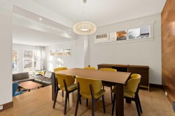 Set in one of Inglewood’s most coveted pockets, backing directly onto the Bow River and the incredible pathway system, this home offers a rare blend of privacy, polish, and effortless access to downtown. From the moment you arrive, the finish is unmistakably elevated: newly refinished hardwood floors, plush wool carpeting, and a bright, spacious living room framed by tall windows and the added luxury of no neighbours in front (or behind), just a quiet streetscape. Entertain with ease in the generous dining room, then unwind in the stylish family room where a European linear wood burning fireplace is anchored by a custom reclaimed-wood mantle. The contemporary kitchen is beautifully appointed with a gas range, premium stainless steel appliances, 2 garburators, granite countertops, and richly stained cabinetry. Step outside onto a large deck overlooking a park-like setting with views that stretch beyond the river and pathways, creating an outdoor space that feels like your own private escape. Step down from the deck into a backyard that’s currently open, with the option to fence it in if you’d like. An underground gas line runs to the yard and presently services the included fire table. A striking glass railing and custom faux brick accents lead you upstairs to a spacious flex space, that's ideal for an office nook, as well as 2 bedrooms, including the primary suite with vaulted ceilings and an expansive walk-in closet. The spa-inspired bathroom delivers true retreat energy with a freestanding soaker tub, separate shower, trough sink and the practicality of a laundry chute that makes everyday living feel seamless. Central A/C keeps the home comfortable through Calgary’s warm summer days. The fully finished lower level adds a third bedroom, full bathroom, and laundry room with sink, along with direct access to the attached heated garage that has a recently epoxied floor with a central vac system. With incredible access to running and biking trails, St. Patrick’s Island Park, and the best of Inglewood’s cafés and restaurants just a stroll away, this is river-adjacent living at its most refined. This portion of Inglewood was protected from the 2013 flood by an existing berm, offering added peace of mind in a location that truly has it all.