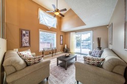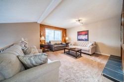 Welcome to this well-maintained 5-level split detached home located in the desirable community of Ranchlands, set on an oversized, beautifully landscaped lot with exceptional outdoor living spaces. Offering approximately 1,425 sq. ft. of living space above grade plus an additional 732 sq. ft. below grade, this home delivers a unique and functional floor plan with room to grow. The main living level features a bright eat-in kitchen and a spacious, separate living room with soaring ceilings, creating an inviting space filled with natural light while maintaining defined living areas. Two comfortable bedrooms are conveniently located on these levels, making the layout ideal for families or downsizers. Step directly from the living room onto a private deck, perfect for morning coffee or evening entertaining while overlooking the backyard. Just a few steps up, the second-floor loft overlooks the living space and serves as an ideal TV or lounge area, complete with a cozy fireplace and a convenient 2-piece powder room. The lower levels expand the living space further with an additional bedroom and full bathroom, a generous recreation n room, a dedicated laundry room, and ample storage for seasonal items and hobbies. Outside, the backyard truly sets this property apart. The extensively landscaped yard features a heated outdoor water feature designed for year-round enjoyment, along with a separate fire pit area creating a private retreat perfect for relaxing or entertaining in every season. The rubber drive and walkways are low maintenance, durable and a safer alternative to concrete and will not crack in the cold. A single detached garage with front drive access adds everyday convenience and additional parking. Located in a quiet, established neighbourhood close to parks, schools, shopping, and transit, this Ranchlands home offers a rare combination of space, character, and standout outdoor living in northwest Calgary.